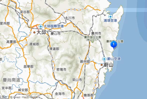 日本生誕説が生まれているのは倭国を日本に直結させるからで、それは誤った解釈である。。『三国史記』は「辰韓の阿珍浦口に着いた」とし、『三国遺事』は「鶏林の東の下、四知村の阿津浦」とし、『新増東国輿地勝覧』も「阿津浦」として、いま遺墟碑があるところが脱解王のたどり着いた所であると伝えている。《現在の慶尚市陽南面下西里=左地図=慶尚南道蔚山広域市の目島と比定する説もある》いわゆる『阿珍浦(アチンポ)伝説』において、倭国を金官駕洛(金海市)にとれば、75Km東北の浜辺は、ちょうどこのあたりになる。《地図の印》ここに、漂着し、カササギが舞っているので箱のような船を開けてみると男子がいたというのである。(一里=約75メートルの短里)